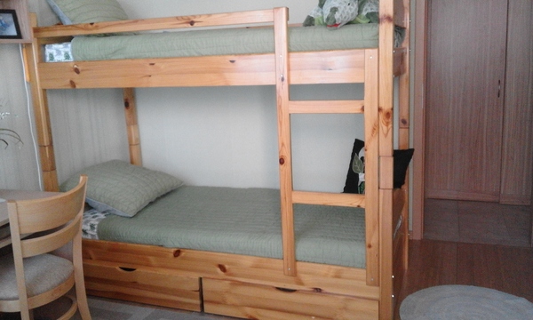 Продавам ново двуетажно легло ,велинградско производство, с размери дължина 2м.-височина 1.65м.-ширина и двата матрака към него / мемори пяна / . Цена 340 лв.