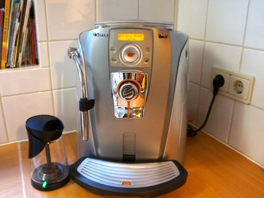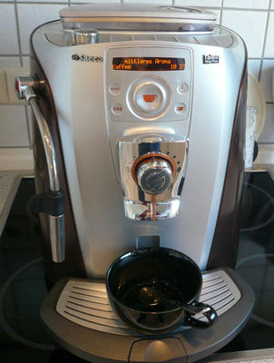Оторизиран сервиз саеко делонги продава Еспресо машина Saeco Talea Ring Plus. Лесна и удобна за използване. Управлението и програмирането на кафе машината не е трудно с помощта на сензорен пръстен. На дисплея на таблото сензорен контрол ще Ви покаже наличните опции. Придвижване през менютата и настройките е лесно, както използване на iPod. Под екрана ще намерите регулатор за контрол на скоростта на каймака-SBS системата. Кафемелачката с керамични ножове осигурява еднаквост на смилане на кафето, функция за предварително накисване на кафето увеличава наситеността на вашата напитка. Всичко това способства да се получи качествено еспресо в чашата. Други екстри: -отопление за чашите, електронна подвижна тава, която може да побере високи и ниски чаши, използването на смляно кафе, вграден таймер и много други - всичко за удобно ползване и отлични резултати. Кафе машина Saeco Talea Ring Plus - модерен стил еспресо постоянно качество от компанията Saeco! Всички машини имат ГАРАНЦИЯ и осигурен гаранционен и след гаранционен сервиз. Saecoexellent сервиз номер 1 с най добра подръжка и профилактика!!! Ново-предлагаме изкупуване на Вашата стара кафе машина(само Saeco, MIOSTAR, ROTEL, TURMIX, KONING, само роботи! ), без значение дали е работеща.
