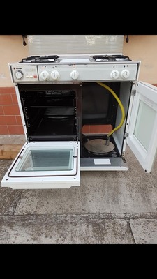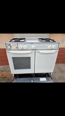 Печката е изцяло на газ има 4 котлона и шкаф за газовата бутилка