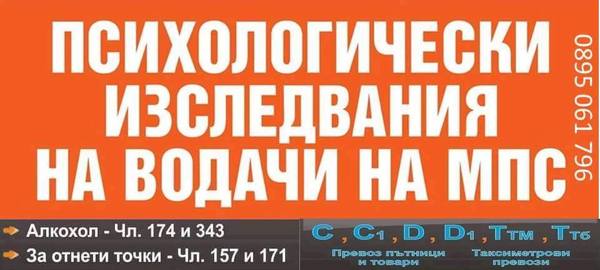 Това означава, че е нужно да се явите на ПСИХОлогическо изследване за водачи на МПС. Проверете психологическата си годност при нас !