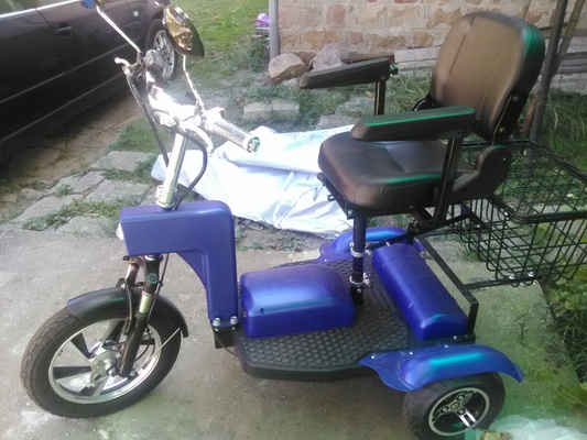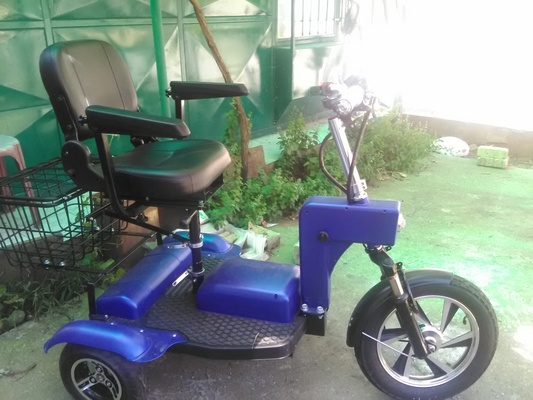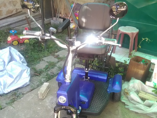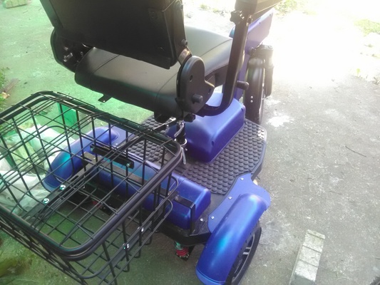 Батерия гелова необслужваема 48в.20ач./4х12в./. Размер на гумите предна 16", задни 12". Преден шоков амортисьор. Пробег 70-80км./зависи от наклоните и теглото/, три скорости.Преден фар, индикатор мощността, клаксон, огледала за задно виждане. Защита против претоварване и презареждане. Тегло на триколката 90кгр. полезен товар до 160кгр. удобна н