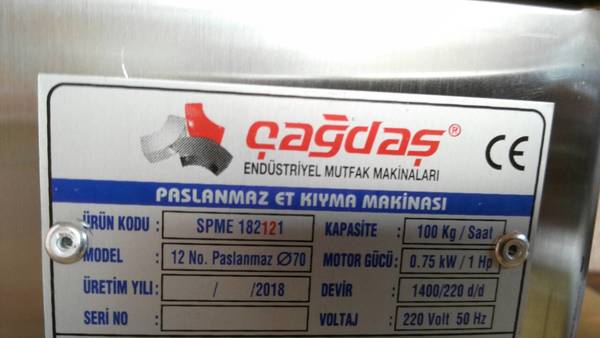 Професионална монофазна месомелачка NO:32, комплект с 2ножa+ 2 решетки no; 4.8mm и фуния.. Мощност 220V - 3,00kw. размери-33/86/48см.. Производителност 750кг/1час. Мощност 380V - 3,00kw. Изходящ отвор за месо Ø 100мм. -86кг. Цена-1300лв