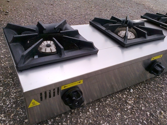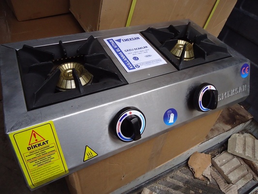 2./Б Професионален котлон на газ двойка за готвене Турция със Евро сертификат по изискванията на CE - Eвропеския съюз със защита на газта и сменяеми дюзи за природна газ и метан и обикновена газ пробан бутан за бутилка, стандартен размер широчина от ляво на дясно -61см. дълбочина 31см.вис. 17см. Цена-550лв.