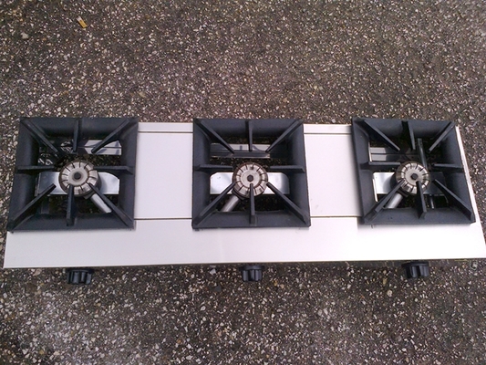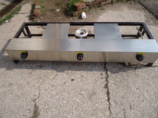 6./Професионален котлон на газ тройка за готвене Турция със Евро сертификат по изискванията на CE - Eвропеския съюз със защита на газта и сменяеми дюзи за природна газ и метан и обикновена газ пробан бутан за бутилка, стандартен размер широчина от ляво на дясно -98см.. дълбочина 35см. височина 22см. Цена-650лв.