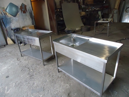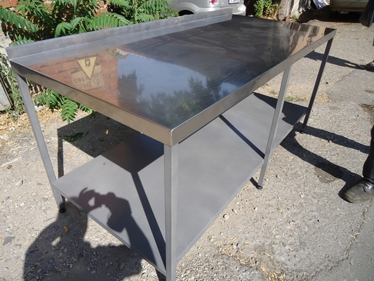 1. Маса от неръждавейка (юнокс ) работна горен плот,долна част черни профили прахово боядисани, за дюнер , бърза закуска,ресторанти,заведения широчина от ляво на дясно 2000мм . дължина 800мм . височина 900мм . със берт 100мм .завит нагоре към стената Цена 590лв.,опция изцяло неръждавейка със долните профили 790лв.
