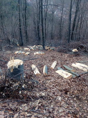 Любители на природата непрекъснато се грижат за младият подраст,като големите дървета се отстраняват! Използва се метод: "Последователи на Джотовия" Характерното за метода е, че след отрязването дърветата се оставят да изсъхнат и се прибират късно есента, или другата година.Нововъведение е цепенето на място-видно от репотажната снимка.