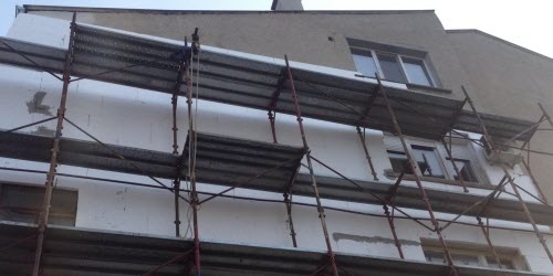 - Топлоизолация със скеле, автовишка или алпийски способ.