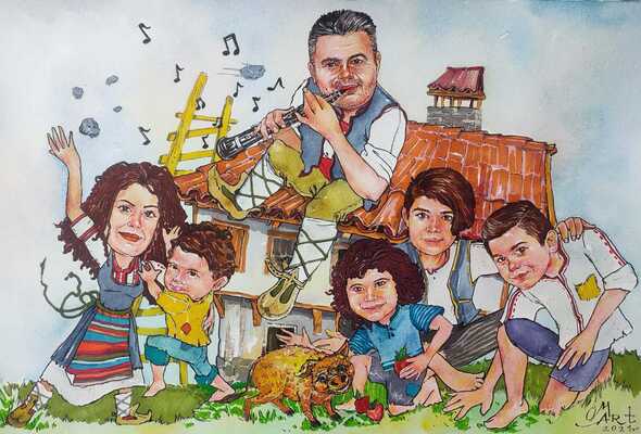 Ръчно нарисувани карикатури / шаржове, портрети, пейзажи , ако търсите интересен и запомнящ подарък.