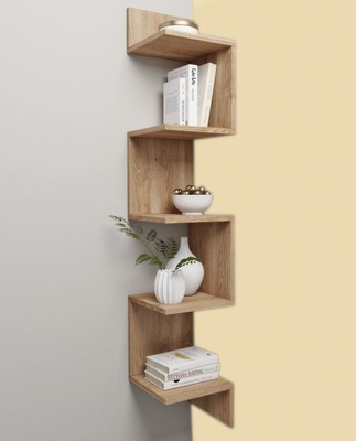 Ъглова етажерка за стена - Дъб Сонома - А-9