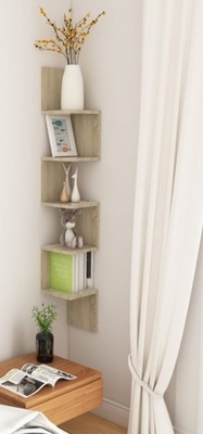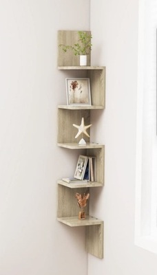 Ъглова етажерка за стена - Дъб Крафт Бял - А-9