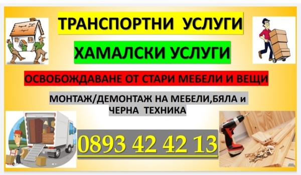 Фирмата ни се занимава с хамалски услуги, транспортни услуги, освобождаване от стари мебели и вещи, сглобяване на мебели и техника.