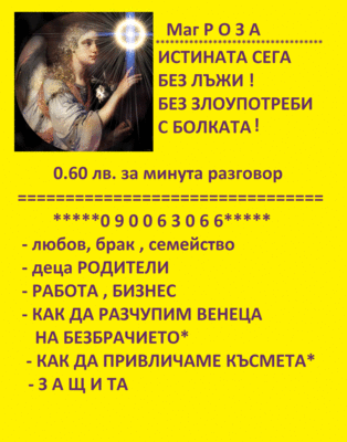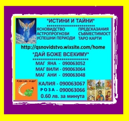 ЯСНОВИДСТВО С ЯНА, гледа познава , предсказанияте се сбъдват, открива , разваля. 090063052 ( 0.60ст. за минута разговор )