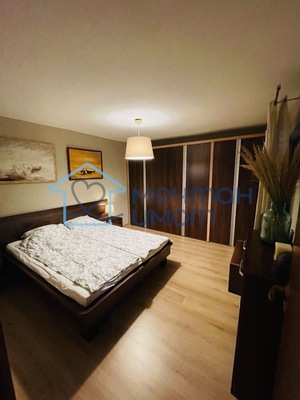 - Второ ниво: входно антре, кабинет, две спални, напълно обзаведена кухня, хол и голяма баня.