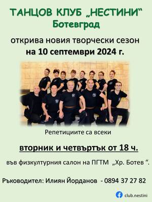 Танцов клуб „Нестини“ – Ботевград открива новия творчески сезон на 10 септември 2024 г.