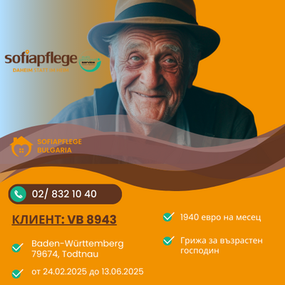 Повече информация можете да получите като посетите нашия сайт: https://sofiapflege.bg/listings/client-9476eab6-9b49-4724-ae9e-5f7f85481436/ или като се свържете с нас на тел. 02/ 832 10 40.