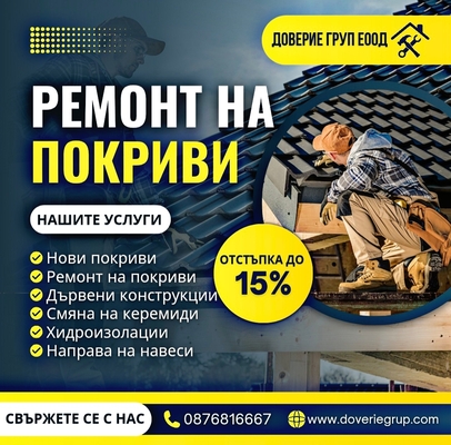 #ДовериеГруп #РемонтНаПокриви #Хидроизолация #СтроителниУслуги #Коректност #Качество #ДоволниКлиенти