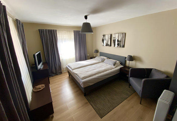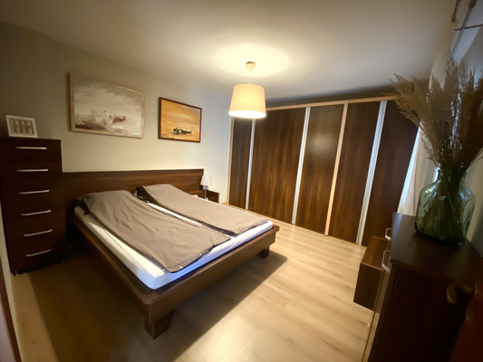 Входно антре, кабинет, две спални, напълно обзаведена кухня с всички необходими за едно домакинство ел. уреди, мокро помещение, хол и голяма баня с тоалетна.