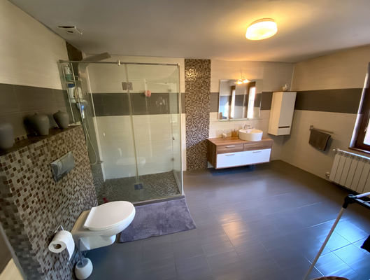 Две напълно обзаведени масивни къщи с обща застроена площ 258 кв. м. и дворно пространство с площ от 631 кв. м., професионално озеленено.