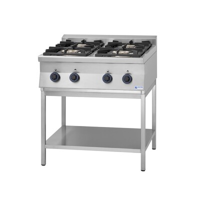 Този професионален газов котлон е създаден за интензивна употреба в ресторанти, хотели и заведения, където ефективността е от ключово значение. С четири мощни горелки (2 х 5.3 kW и 2 х 8.3 kW) и обща мощност 27.2 kW, уредът осигурява равномерно нагряване и бързо приготвяне на разнообразни ястия.