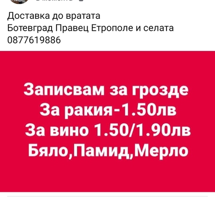 Грозде за вино и ракия цена 1.50/1.90 лв
