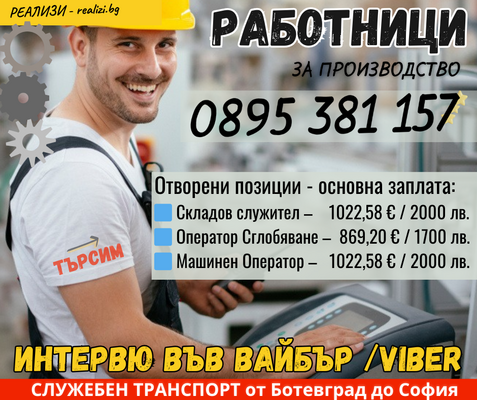 РЕАЛИЗИ, търси служители за производство в София!