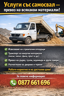 Транспорт на инертни материали (пясък, чакъл, филц, пръст и др.)