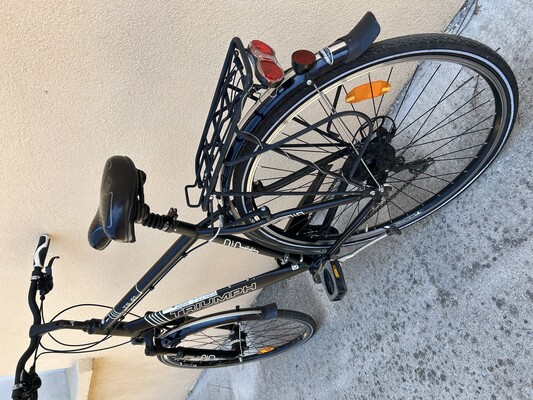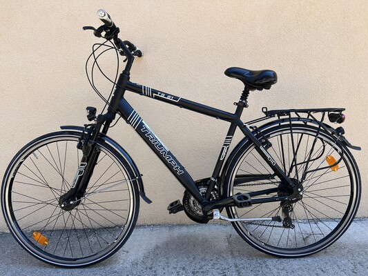 Мъжки немски алуминиев велосипед Триумф 28 цола, 21 скорости, динамоглавина, амортисьорна вилка.Цена 190 евро.