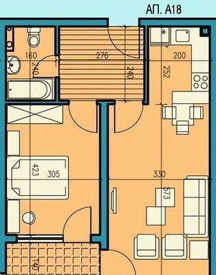 Апартамент А18 е разположен в секция 'А' на пети етаж и се състои от входно антре, просторна дневна стая с кухненски бокс, голяма спалня и баня с тоалетна. И двете стаи излизат на обща тераса. Изложение изток с чудесна гледка към озеленения парк на комплекса и към Стара планина. Цената е с включен ДДС. Апартаментите са със завършени бани и тоалетни. Посетете нашия сайт www. msi-vitosha. com, за да намерите още много обяви. Предлагаме още услуги, като Професионален Домоуправител и Управление на имоти.