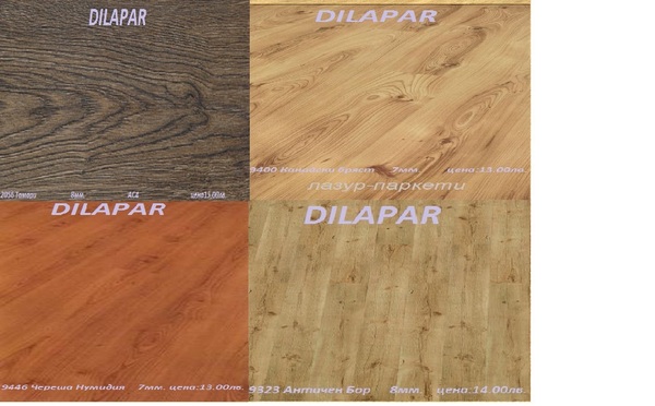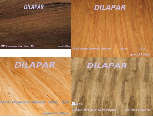 Фирма “DILAPAR LTD” предлага уникални промоции! на най ниски цени лам.паркет. Фирмата се занимава повече от 5год. с търговия на лам. подови настилки и техният монтаж. В своя стремеж за максимално задоволяване на динамичните потребителски изисквания, фирмата ни ви предлага висококачествена продукция от най-големите световни производители:Balterio , Classen , Egger , Kaindl , Kronopol , Kronospan , Kronoswiss , Kronotex , Tarkett , Quick.