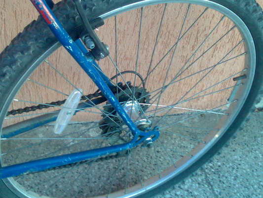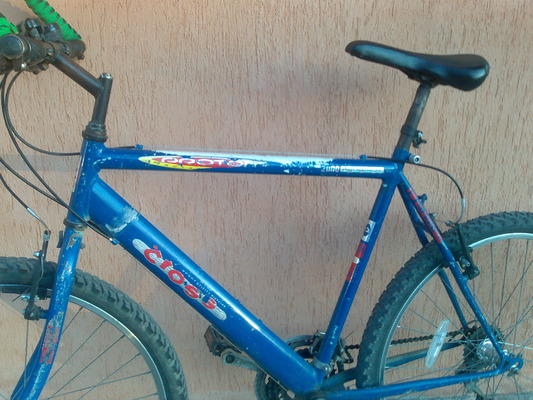 Пордавам колело.Има външни забележки както се вижда на снимките.Предната гума е на 60% а задната на 90%.Скоростите,оптегача(среден и заден)както и запчатката са Шимано.Каплите са алуминиеви и центровани.Спирачките са нови.Колелото се намира в Ботевград.