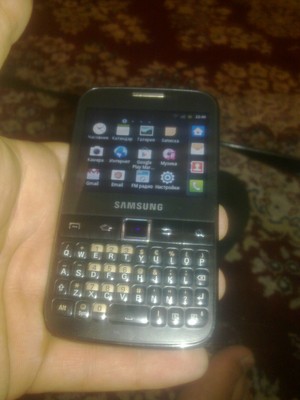 Продавам смартфон Самсунг. Тъч скрийн и клавиатура. Зарядно, кутия,гаранция. Запазен външен вид. 2 гб сд карта, Телефона е закупен от германос, 1-ви собственик. Изпращам с Еконт и Спиди. цена: 100 BGN