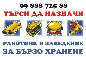 Заведение за бързо хранене (срещу пощата) търси да назначи работник