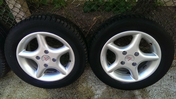 Лети алуминиеви джанти 14-ки с летни гуми ,,мишелин" 185/60/14. Джантите са с 4 болта с разстояние между тях 11 см. Само на две от джантите има леки драскотини, добре балансирани. Коментар на цената при сериозен интерес!