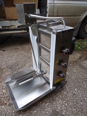 6.Б / Дюнер машина нова тройка със ЕВРО сертификат по изискванията на CE - Eвропеския съюз със защита на газта, височина 1000мм.,комплект тава и шиш Цена 650лв. .,Със мотор отгоре..