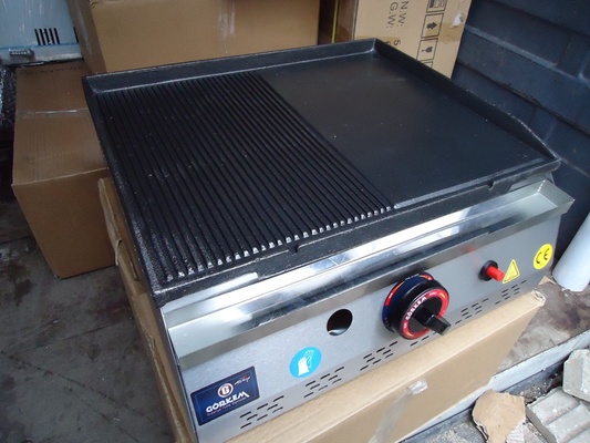 2.Газова скара плоча от чугун или стомана на ток или на газ и оребрена 70/40см. на два кръга със пиезо кристал запалване..