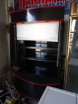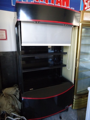 1. Витрина край-стенна открита монофазна черна със щора за икономичност за през вечерта която се спуска надолу втора употреба плю-сова вертикална за заведения и хранителни магазини външни размери височина 1.90см.,широчина от ляво на дясно 1.00см.,дълбочина 0.70см., вътрешни размери височина 1.10см.,широчина от ляво на дясно 0.85см.,дълбочина 0.40см., 4бр. стелажи, 5-нива, Цена – 1.150лв. / 3 месеца гаранция /