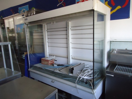 2.Витрина край-стенна открита монофазна бяла Италия COSTAN със щора за икономичност за през вечерта която се спуска надолу втора употреба плю-сова вертикална за заведения и хранителни магазини със вътрешен мотор външни размери височина 1.95см.,широчина от ляво на дясно 1.85см.,дълбочина 0.80см., вътрешни размери височина 1.15см.,широчина от ляво на дясно 1.80см.,дълбочина 0.50см., 4бр. стелажи, 5-нива,размер на стилажите широчина от ляво на дясно 0.85см.,дълбочина 0.45см. седем броя стилажи Цена – 2.300лв. / 3 месеца гаранция /