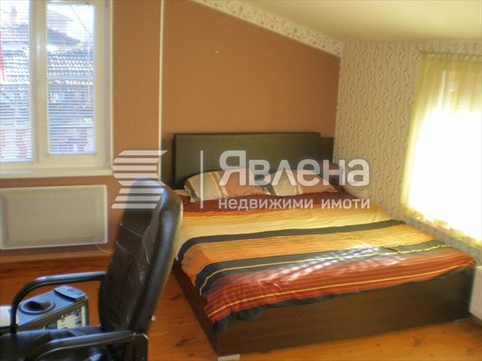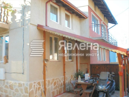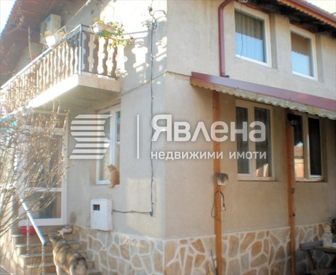 Къща на два етажа с РЗП около 82 кв.м. построена върху УПИ с площ 405 кв.м. Разпределение: - първи етаж: входно антре, кухня с трапезария, дневна с камина, баня с тоалетна - втори етаж: емпоре, две самостоятелни спални, една от които със собствена баня с тоалтна, има тераса с достъп от емпорето. Къщата е реновирана, и са сменени ВиК инсталацията и дограмата - PVC с К стъкла. Подовите настилки са естествен камък (емпоре и стълби), теракота, и ламиниран паркет. Двора на къщата е много добре поддържан и озеленен - райграс, овошки и др. Къщата разполага с две паркоместа в двора. Къщата е близнак.