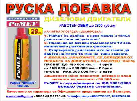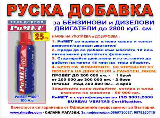 БЕЗ РЕМОНТ и ИЗЛИШНИ РАЗХОДИ! НАНО ДОБАВКИ „РиМЕТ”за ДВИГАТЕЛИ!