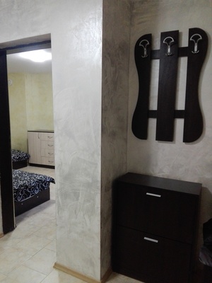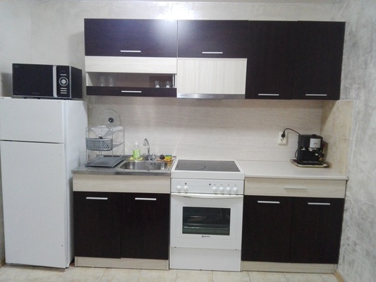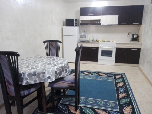 Състои се от три стаи/кухня, спалня, стая с две еденични легла/ и баня с тоалетна.