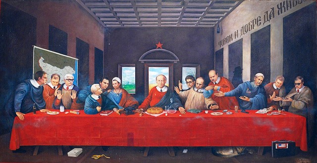 Абсолютна загадка до днес остава и авторството на „Тайната вечеря на Политбюро". Според експерти платното е изографисано между 1979 и 1980 година, а предположенията за майстора на четката варират от култовия пловдивски живописец Георги Божилов - Слона, до сина на дясната ръка на Тато Милко Балев - Калин.