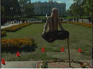 Холандският фокусник Рамана шокира американците с левитацията си пред Белият Дом в САЩ. Илюзионистът, чието истинско име е Уолтър Бийдендийк, се извиси на около метър от земята, подпирайки се само на малка пръчка с лявата си ръка.