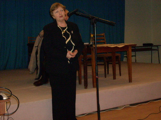 Облечена в стилен костюм, г-жа Веселинова разказа малко известни неща от живота на нейната майка. Паралелно с разказа вървяха и фотосите на видеостената. Имаше и малка изложба от семейния албум на юбилярката, както и факсимилиета и оригинали от вестниците и списанията от онова време, отразили събитието.