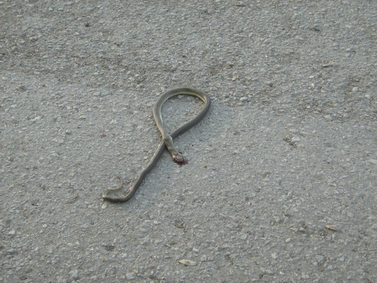 Убита змия на ул. “Кирил и Методий” в близост до градинката на “Площад 20”, видя наш репортер. Хора от квартала казаха, че не знаят как влечугото е попаднало там. Очеведно е, че то не е прегазено с кола, а е стъпкано или уцелено с камък в главата.