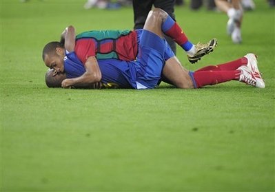 По доста странен начин французинът в Барса Тиери Анри изрази спотанно радостта си от първия гол на съотборника си Самуел Ето'0