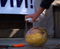 Те обявиха символични "златни награди" - позлатени със спрей, на министри и политици "за заслуги към науката и образованието" през последните 18 години (виж фоторепортаж).