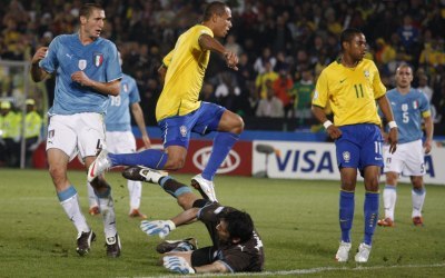 Двубоят започна равностойно, като атаки имаше и към двете врати, но по-опасните положения успяха да сътворят бразилците, които още в шестата минута можеха да се разпишат. Рамиреш получи хубав пас от Луиш Фабиано и стреля към вратата на съперника, но нямаше късмет и нацели гредата зад Джанлуиджи Буфон.