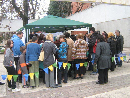 Това не може да се нарече нито кофа, нито контейнер. Такива миниатюрни решетки с три пликчета може да послужи повече за реклама. Въпросът е дали, как, кога, къде ще се извозват разделно събраните отпадъци. Иначе си губи смисъла. Пък и при липса на такива големи контейнери на адресите...? Вместо да бъде тихо, за да могат хората да питат и да чуват, беше пусната висока, заглушаваща музика?