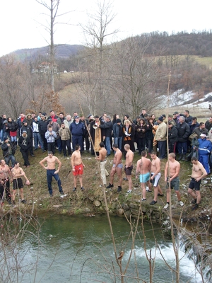 За трета поредна година в Етрополе се осъществява богоявленският ритуал по изваждане на кръста от водите на река Гноеница в м.Изворите.