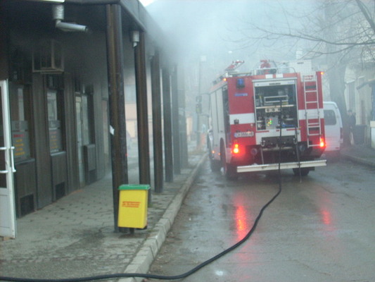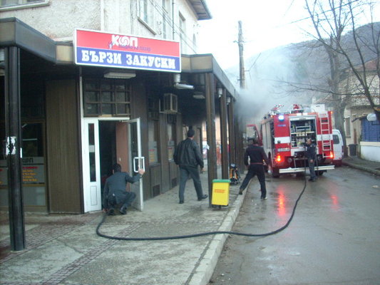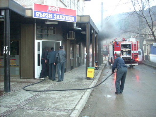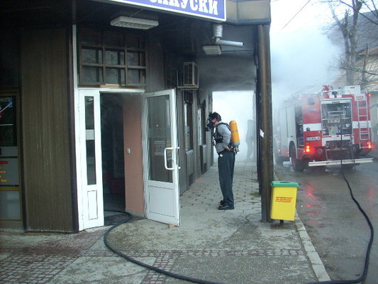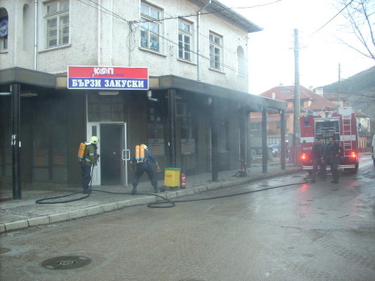 От един от прозорците на магазина за бързи закуски излизаше гъст черен дим. Заедно с дежурния екип в гасенето на пожара се включиха началникът и заместник-началникът на пожарната служба. Лично началникът на пожарната нахлузи кислородната маска и с още един негов колега влезе в задименото помещение.